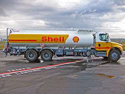 Shell Jet A-1 refueller truck on the ramp at Vancouver International Airport. Note the signs indicating UN1863 hazardous material and JET A-1.