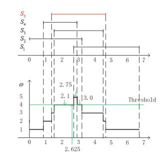 - Divide the union of collected measurements into mutually exclusive intervals based on the number of measurements that intersect, which is known as the weight of the interval.