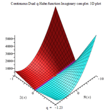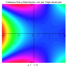 In mathematics, the continuous dual q-Hahn polynomials are a family of basic hypergeometric orthogonal polynomials in the basic Askey scheme. Roelof Koekoek, Peter A. Lesky, and René F. Swarttouw (2010, 14) give a detailed list of their properties.