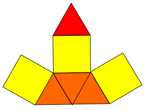 - ↑ Stephen Wolfram, "Elongated triangular pyramid" from Wolfram Alpha. Retrieved July 21, 2010.