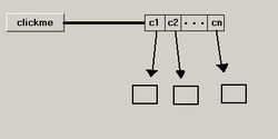 Delegate event model. clickme is the event source a button in this example, and it contains a list of listeners.