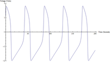 The FitzHughNagumo model is a simplified version of the Hodgkin–Huxley model which models in a detailed manner activation and deactivation dynamics of a spiking neuron. In the original papers of FitzHugh, this model was called Bonhoeffervan der Pol oscillator (named after Karl Friedrich Bonhoeffer and Balthasar van der Pol) because it contains the van der Pol oscillator as a special case for  a=b=0 . The equivalent circuit was suggested by Jin-ichi Nagumo, Suguru Arimoto, and Shuji Yoshizawa.