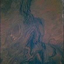 The first humans to inhabit the Flinders Ranges were the Adnyamathanha people (meaning "hill people" or "rock people") whose descendants still reside in the area, and the Ndajurri people who no longer exist.[8] Cave paintings, rock engravings and other artefacts indicate that the Adnyamathana and Ndajurri people have lived in the Flinders Ranges for tens of thousands of years. Occupation of the Warratyi rock shelter dates back approximately 49,000 years.[9][10]