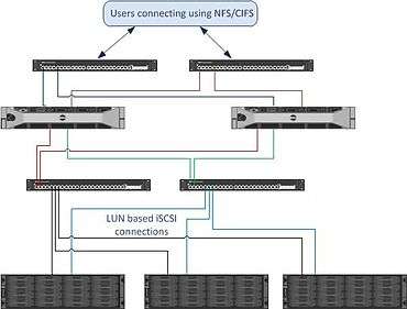 The FluidFS architecture is layered, and presents a traditional file system to network clients while performing special functions at the back end. This is designed to utilize all available resources at the network, server and disk levels to improve response times.