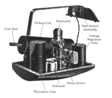 Historically, it was spelled with either 's' or 'z', and both spellings can still be found.[10] In the United States and some military forces,[11] fuze[12] is used[13][14][15][16] to denote a sophisticated ignition device incorporating mechanical and/or electronic components (for example a proximity fuze for an artillery shell, magnetic/acoustic fuze on a sea mine, spring-loaded grenade fuze,[17][18][19] pencil detonator or anti-handling device)[20] as opposed to a simple burning fuse.[21]