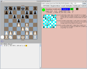 The program is a console application that communicates with a chess Graphical User Interface (GUI) via standard Universal Chess Interface protocol. IPPOLIT is a bitboard chess engine optimized for 64-bit architecture with native support for both 32-bit/64-bit Linux and Windows operating systems. According to recent testing, it is one of the stronger chess programs.[2]