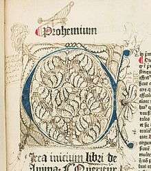 The first recorded use of incunabula as a printing term is in the Latin pamphlet De ortu et progressu artis typographicae ("Of the rise and progress of the typographic art", Cologne, 1639) by Bernhard von Mallinckrodt, which includes the phrase prima typographicae incunabula, "the first infancy of printing", a term to which he arbitrarily set an end of 1500 which still stands as a convention.[3] The term came to denote the printed books themselves in the late 17th century. John Evelyn, in moving the Arundel Manuscripts to the Royal Society in August 1678, remarked of the printed books among the manuscripts: "The printed books, being of the oldest impressions, are not the less valuable; I esteem them almost equal to MSS."[4]