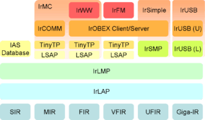 The mandatory IrLAP (Infrared Link Access Protocol) is the second layer of the IrDA specifications. It lies on top of the IrPHY layer and below the IrLMP layer. It represents the data link layer of the OSI model.