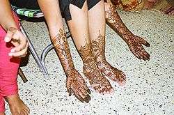 - ↑ "Indian Mehndi Designs". fashionsrunway.com. Retrieved 9 January 2014.