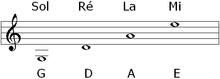 | violin, mandolin, Irish tenor banjo | G, D, A, E |
