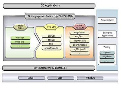 OpenSceneGraph is an open source 3D graphics application programming interface,[1] used by application developers in fields such as visual simulation, computer games, virtual reality, scientific visualization and modeling.