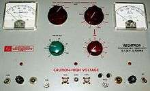 A high voltage power supply is one that outputs hundreds or thousands of volts. A special output connector is used that prevents arcing, insulation breakdown and accidental human contact. Federal Standard connectors are typically used for applications above 20 kV, though other types of connectors (e.g., SHV connector) may be used at lower voltages. Some high voltage power supplies provide an analog input that can be used to control the output voltage. High voltage power supplies are commonly used to accelerate and manipulate electron and ion beams in equipment such as x-ray generators, electron microscopes, and focused ion beam columns, and in a variety of other applications, including electrophoresis and electrostatics.
