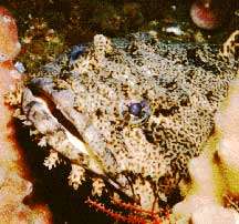 The oyster toadfish, Opsanus tau, also known as the ugly toad, oyster cracker, oyster catcher, and bar dog, is a fish of the family Batrachoididae. The maximum length of the toadfish is about 38 cm; the most common recorded length of an oyster toadfish is about 30 cm. They are generally yellowish with a pattern of brown oblique bars.