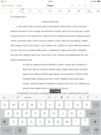 Pages is a word processor developed by Apple Inc. It is part of the iWork productivity suite and runs on the OS X and iOS operating systems.[1] The first version of Pages was announced on January 11, 2005, and was released one month later.[2] The most recent Macintosh version, Pages 5, was released on October 22, 2013. The previous version, version 4, was released on January 6, 2009, as a component of iWork '09.[3] On January 27, 2010, Apple announced a new version of Pages for iPad with a touch interface.[4] On May 31, 2011 Apple updated the iOS version of Pages to 1.4, bringing universal binaries allowing the app to be run on iPad, iPhone and iPod Touch devices.[5] On October 12, 2011, Apple updated the iOS app to version 1.5, adding the iCloud "Documents in the Cloud" feature. iOS Pages was updated to version 1.6 on March 7, 2012 and will run on iOS 5.1 or later only. Pages for OS X was updated to version 4.3 on December 4, 2012, to support Pages 1.7 for iOS which was released on the same day. Pages for iOS 1.7.1 introduced better compatibility with Word and Pages for Mac, and v1.7.2 merely adding stability improvements and bugfixes was released on March 7, 2013. On October 23, 2013, Apple released a redesign with Pages 5.0, and made it free for anyone with an iOS device.