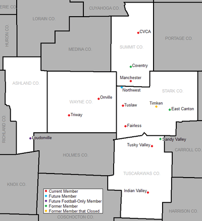 - ↑ Dorksen, Aaron (March 4, 2015). "Orrville, Northwest Extended Invitations to Join Principals Athletic Conference". Wooster Daily Record. Retrieved March 7, 2015.