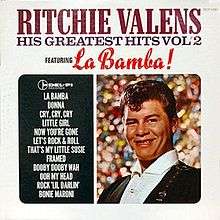 Ritchie Valens...His Greatest Hits Volume 2 is the second greatest hits compilation by Ritchie Valens. This follow-up to the Ritchie Valens Memorial Album/His Greatest Hits includes Valens' last two charted singles and ten tracks from the three original albums. Three tracks were previously issued on the first greatest hits package: "Donna", "La Bamba" and "Cry, Cry, Cry"