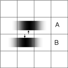 - The location of a single source can be determined by computing the "center of gravity" (centroid) of the light distribution extending over several adjacent pixels (see figure on the left). Provided that there is enough light, this can be achieved with arbitrary precision, very much better than pixel width of the detecting apparatus and the resolution limit for the decision of whether the source is single or double. This technique, which requires the presupposition that all the light comes from a single source, is at the basis of what has becomes known as superresolution microscopy, e.g. STORM, where fluorescent probes attached to molecules give nanoscale distance information. It is also the mechanism underlying visual hyperacuity.[8]