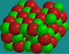 Many compounds from first row of transition metal monoxides (MO), from TiO to NiO, have a rocksalt structure. The rock salt structure is generated by filling all octahedral sites with cations in an oxygen anion fcc array.[3][4]